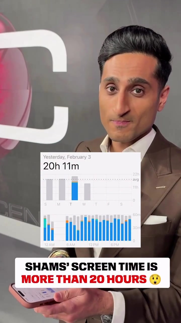 02月06日讯 名记Shams在自己的社媒晒出动态展示了自己在交易截止日前一天的屏幕使用时间,高达20个小时11分钟。在被问到这是否是自己的屏幕使用时间纪录时,Shams表示自己可以使用得更多。